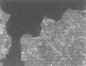 人工衛星から見た野洲川の三角州